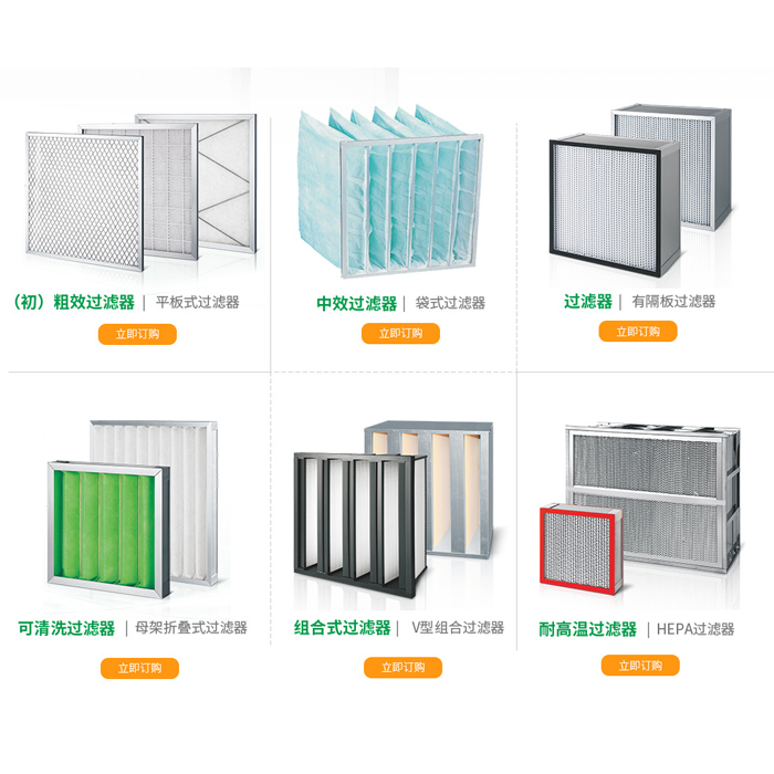 二、中效過濾器:板式中效過濾器、袋式中效過濾器、V字形大風量中效過濾器、鋁框中效過濾器,鍍鋅框中效過濾器、F5中效過濾器、F6中效過濾器、F7中效過濾器、F8中效過濾器、F9中效過濾器等。